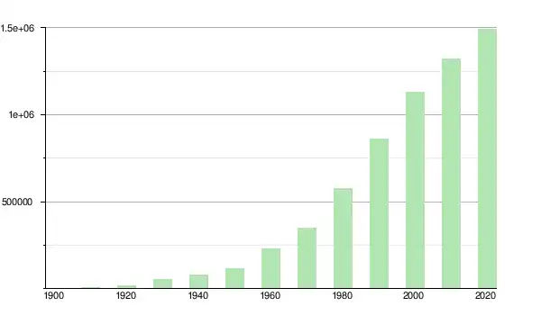 | 1950 | 114 688 | ▲ +43,38 % | |