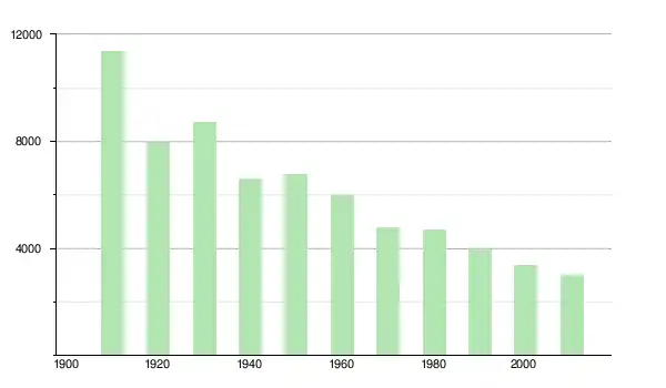 | 1960 | 5 977 | ▼ −11,79 % | |