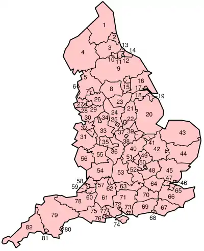 L'Angleterre est actuellement découpée en 82 comtés ou équivalent :