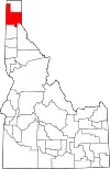 | Boundary | 1915 | La frontière avec le Canada | Bonners Ferry | 10 853 | 3 310 | 3 286 | 24 | 3,3 | -1,1 % | ![]() |