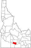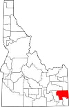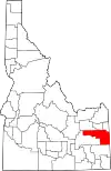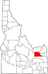 | Caribou | 1919 | Les monts Caribou, une chaîne de montagne des montagnes Rocheuses orientée Nord-Sud qui s'étend dans le Sud-Est de l'État | Soda Springs | 6 808 | 4 658 | 4 569 | 89 | 1,5 | -2,2 % | ![]() |