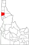| Clearwater | 1911 | La Clearwater River, un tributaire principal de la Snake River, qui traverse le comté | Orofino | 8 577 | 6 444 | 6 364 | 80 | 1,3 | -2,1 % | ![]() |