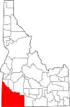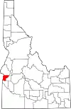 | Canyon | 1892 | La gorge de la Boise River ou la gorge de la Snake River qui fait office de frontière naturelle avec le comté d'Owyhee | Caldwell | 198 871 | 1 563 | 1 521 | 42 | 130,7 | 5,3 % | ![]() |