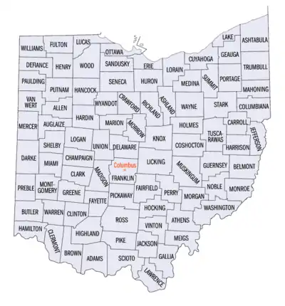 L'État américain de l’Ohio est divisé en 88 comtés (counties).
