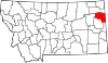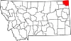 | Sheridan | 1913 | Philip Sheridan (1831-1888), officier de carrière de l'armée américaine qui servit comme général dans l'Armée de l'Union pendant la guerre de Sécession et pendant les guerres indiennes | Plentywood | 3 668 | 4 419 | 4 344 | 75 | 0,8 | 8,4 % | ![]() |