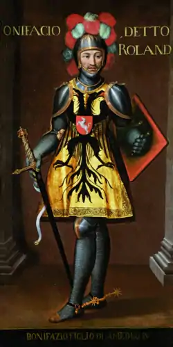 | 11 |  | Boniface le Roland (1244-1263) | 1253-1263 | Fils du précédent. Il hérite de la charge comtale à 9 ans. Sa mère, Cécile des Baux, est régente avec son oncle, Thomas de Piémont. Il meurt, à 19 ans, des suites de ses blessures en captivité en 1263, après une fougueuse aventure pour prendre Turin. | |