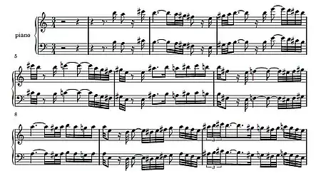 Le troisième mouvement est une véritable prouesse formelle : il combine une forme Lied (ABA') avec une forme Rondo (aba(A) cdc(B) aea(A'), a étant le refrain) et une forme « en arche » qui se concentre sur la partie centrale du rondo (elle-même encore subdivisée à nouveau en trois sous-parties). De plus, une véritable fugue modale (en Do# dorien ou mode de Ré sur Do#) s'y intègre (partie b du rondo).