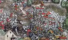 La date de 1291 est choisie à la fin du XIIIe siècle comme date de naissance de la Suisse, car c'est celle du Pacte fédéral, le plus vieux document écrit connu parlant du renouvellement d'une précédente alliance entre des cantons suisses : Uri, Schwytz, qui donnera son nom au pays, et Nidwald[55],[56] (vallée inférieure d'Unterwald). Ces cantons confirment en 1315 leur alliance par le pacte de Brunnen, conclu après la bataille de Morgarten, qu'ils remportent contre Léopold Ier d'Autriche.