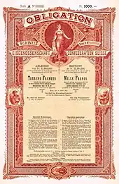Au XIXe siècle, le latin servait traditionnellement de langue commune pour les inscriptions officielles. Ainsi, la formule Confœderatio Helvetica se trouve notamment inscrite sur les pièces de monnaie suisses de 5, 10 et 20 centimes et sur les pièces de 5, 10 et 20 francs, mais pas sur les pièces de 50 centimes et de 1 et 2 francs — où ne figure que le nom « Helvetia » — ainsi qu'au fronton du Palais fédéral à Berne. Le sigle CH en est la forme abrégée pour les codes postaux et les extensions de noms de domaine sur Internet[20]. CH figure également sur l'autocollant distinctif de nationalité apposé à l'arrière des véhicules automobiles suisses circulant à l'étranger, en application de la Convention de Vienne sur la circulation routière[21],[22],[23].