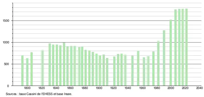 Au dernier recensement de 2021, la commune comptait 1 772 habitants.