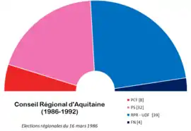 Depuis 1998, le conseil régional d'Aquitaine était composé de 85 membres, répartis de la manière suivante[3] :