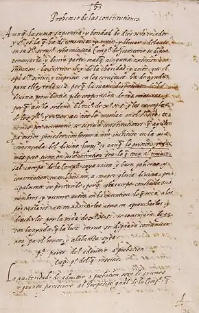 De mars à à Rome, selon les minutes rédigées par Pierre Favre, le premier compagnon d'Ignace, le petit groupe des premiers jésuites débattent de la forme à donner à leur action, devoir d'obéissance, cohésion du groupe alors que l'activité missionnaire disperse les jésuites, rôle dans l'éducation… En , Ignace, Codure et Favre rédigent la prima Societatis Jesu instituti summa, esquissent des Constitutions de la Compagnie avec quelques points forts : l'obéissance à un préposé général, l'exaltation de la pauvreté, le refus du cérémonial monastique, et en particulier de la prière collective et des mortifications.
