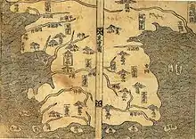 - Oki est au milieu de la mer du Nord et s'appelle Okinoshima. En allant plus loin pendant deux jours et une nuit dans la direction nord-ouest, on atteint Matsushima. Il y a également Takeshima à un autre jour de voyage. Ces deux îles sont inhabitées et, en regardant Goryeo, on peut voir Oki depuis Unshū.