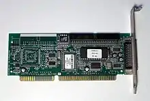Un Host Bus Adapter SCSI (ici une carte 16 bits ISA) de marque Adaptec.
