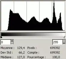 Le contraste caractérise la répartition lumineuse d'une image. Visuellement il est possible de l'interpréter comme un étalement de l'histogramme de luminosité de l'image.
