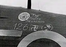 Plus tard, des pilotes polonais combattirent dans la bataille d'Angleterre, où la 303e escadrille de chasse polonaise revendiquèrent le plus grand nombre de victoires que n'importe quelle escadrile alliée. Dès le début de la guerre, la Royal Air Force (RAF) avait accueilli les pilotes étrangers pour compléter le contingent de pilotes britanniques. Le 11 juin 1940, le gouvernement polonais en exil signa un accord avec le gouvernement britannique pour former une armée polonaise et une force aérienne polonaise au Royaume-Uni. Les deux premiers escadrilles de chasse polonais entrèrent en action en août 1940. Quatre escadrilles polonais finalement prirent part à la bataille d'Angleterre (300e et 301e escadrille de bombardement, 302e et 303e escadrille de chasse polonaise), avec 89 pilotes polonais. Avec plus de 50 Polonais qui se battent dans les escadrilles britanniques, 145 pilotes polonais défendirent le ciel britannique. Les pilotes polonais furent parmi les plus expérimentés durant la bataille, la plupart d'entre eux ayant déjà combattu dans la campagne de Pologne en septembre 1939 et la bataille de France en 1940. En outre, la Pologne d'avant-guerre avait établi un niveau de formation au pilotage très élevé. Le 303e escadrille, nommé d'après le héros polono-américain, le général Tadeusz Kościuszko, revendiqua le plus grand nombre de victoires (126) de tous les escadrilles de chasse engagées dans la bataille d'Angleterre, même s'il n'a fait que rejoindre le combat le 30 août 1940[34] Ces pilotes polonais, ne constituant que 5 % des pilotes actifs pendant la bataille d'Angleterre, furent responsables de 12 % du total des victoires durant la bataille.