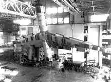 Le B-36 peut emporter jusqu'à 39 tonnes de bombes, dix fois la capacité du Boeing B-17 Flying Fortress qui ne pèse d'ailleurs que 30 tonnes à charge maximale[57]. Le B-36 n'est pas conçu spécifiquement pour transporter une bombe nucléaire dont le développement est encore top secret lors de la conception du bombardier entre 1941 et 1946. Néanmoins, le B-36 embrasse son rôle de vecteur de la dissuasion nucléaire immédiatement après sa mise en service. Jusqu'à l'arrivée du B-52, le B-36 est le seul appareil à pouvoir transporter la première génération de bombe thermonucléaire Mark 17[58] ; mesurant 7,5 mètres de long, 1,5 mètre de diamètre et pesant 19 tonnes, ce sont les plus grandes bombes nucléaires de l'arsenal américain en taille et en poids.