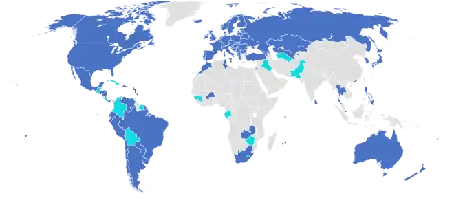 101 parties sont contractantes à la Convention depuis juillet 2019. Le dernier État à avoir adhéré à la Convention est La Barbade en 2019[8].