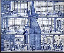 - Les vloerwerkers couvraient les œuvres finies par une mince couche de glaçure au plomb transparent. Ils étaient aussi chargés de la coupe du bois pour alimenter les fourneaux.