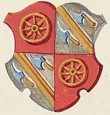 | Steltz | Échasse[alpha 4] | peintres, sculpteurs d’images, orfèvres, fabricants de cartes à jouer, vitraillistes, fabricants de boucliers, métiers du livre (typographes, enlumineurs, relieurs, imprimeurs...) | ![]()  |