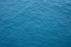 Dans une eau parfaitement pure, la lumière ne pourra pas être diffusée vers la surface, donnant une couleur apparente noire à tous les plans d'eau. Comme la plupart des lacs et des océans contiennent de la matière vivante et des particules minérales en suspension, la lumière est réfractée sur cette matière et une partie de la lumière bleue est diffusée vers la surface. Dans de l'eau très pure, comme c'est le cas dans certains lacs de montagne, la diffusion des particules est très faible. Dans ce cas, la couleur bleutée, moins intense, est due à la réémission par les molécules d'eau elles-mêmes[4].