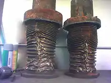 - l'élasticité des parois de la conduite, qui définit un module de compressibilité équivalent Beq. Dans le cas d'une conduite de section circulaire dont l'épaisseur des parois e est petite devant le diamètre D, le module de compressibilité équivalent est donné par , E étant le module d'Young (exprimé en Pa) du matériau constitutif de la conduite ;