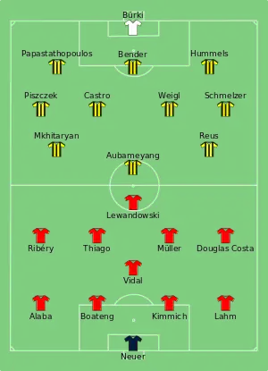 | Vidal  Lewandowski Kimmich Müller Douglas Costa  | Tirs au but 4 - 3  | ||||