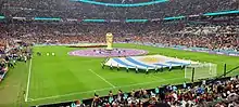 Pour le carré final de la compétition, un nouveau ballon est utilisé et qui se nomme Al Hilm[28]. D'après la FIFA, « Al Hilm, qui signifie « le rêve » en arabe, proposant un design, où prédominent des teintes dorées et des motifs triangulaires, il s'inspire des étendues désertiques de la région de Doha, de la couleur du Trophée de la Coupe du Monde de la FIFA et du drapeau qatarien ».