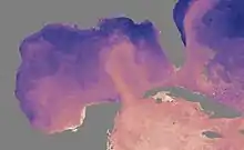 Courant dans le golfe du Mexique. Le courant de Floride est visible entre la Floride et Cuba.