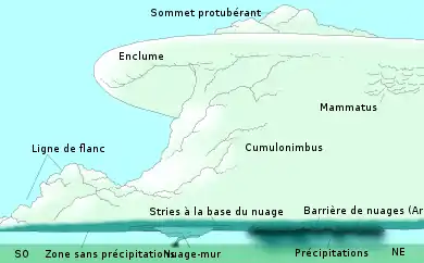 Morphologie d'une supercellule vue du sud-ouest vers le nord-est dans l'hémisphère nord.