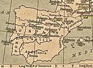 En octobre 1469, Isabelle et Ferdinand, le prince héritier d'Aragon, se marient en secret à Valladolid. Cette union eut comme conséquence directe l'union dynastique de la couronne de Castille à la couronne d'Aragon en 1479, quand Ferdinand fut roi d'Aragon, même si ce ne fut officiel que lors du règne de son petit-fils Charles Quint. Isabelle et Ferdinand avaient des liens familiaux et se sont mariés sans l'approbation du pape, ils ont donc été excommuniés. Postérieurement, Alexandre VI leur donna le titre de Rois Catholiques.