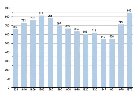 - Sources:INS, Rem:1831 jusqu'en 1970=recensements, 1976= nombre d'habitants au 31 décembre