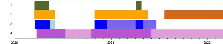 Le début de l'année est marqué également par des cas de contaminations par des mutations du virus : au , dix-neuf cas de contamination par le variant alpha dite alors « britannique » ont été confirmés[107]. En quelques semaines, la part du variant alpha atteint une infection sur quatre[108].