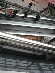 À l'exception des portes d'entrée, le centre ne disposait pas d'ouverture sur l'extérieur jusqu'à sa rénovation[18]. Depuis la rénovation, elle compte des verrières au plafond et une entrée plus grande : une arche prolongée d'une nef de verre.