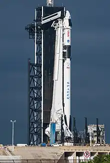 La première mission du Crew Dragon, baptisée SpX-DM1 est lancée le depuis le pas de tir 39A du Centre spatial Kennedy. Ce vol sans équipage a pour objectif de vérifier le fonctionnement du vaisseau durant les phases critiques du vol. Il s'amarre avec l'ISS le , 27 heures après le lancement[42], et reste amarré pendant quatre jours avant de quitter la station le . La mission est un succès et le vaisseau amerrit quelques heures plus tard au large de la Floride où il est récupéré par un navire qui le ramène à la base de Cape Canaveral. Là il doit être examiné, remis en état puis préparé pour le test du système de sauvetage programmé[43].