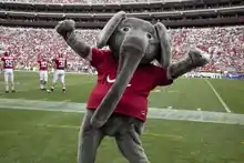 Malgré le surnom, il a fallu près de cinq décennies avant qu'Alabama ne reconnaisse l'éléphant comme sa mascotte officielle. Cependant, les éléphants étaient déjà bien présents dans la tradition les jours de match bien avant cette date[19]. Tout au long des années 1940, par exemple, l'Université présentait sur le terrain, lors de chaque match à domicile, une mascotte d'éléphant vivant nommée « Alamite »[20]. Dans les années 1950, conserver un éléphant vivant toute l'année au sein de l'université s'est avéré trop coûteux. Les responsables universitaires ont alors régulièrement loué des éléphants, souvent dans des cirques ambulants passant par Tuscaloosa[20].