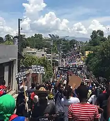 Des manifestations se déroulent dans les villes d'Haïti depuis 2017 pour réclamer la formation d'un gouvernement de transition chargé de fournir des programmes sociaux et de poursuivre en justice des responsables présumés corrompus[1],[2].