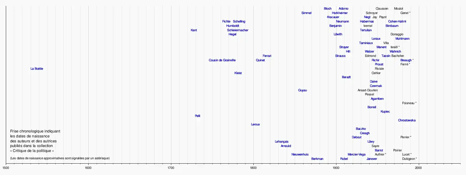 L'expression « Critique de la politique » désigne aussi une constellation de penseurs travaillés par un désir commun de liberté[B 14]. Chaque texte édité dans la collection provient de cette constellation[B 22].