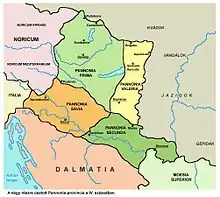 - (hr) Cet article est partiellement ou en totalité issu de l’article de Wikipédia en croate intitulé « Panonska Hrvatska (kneževina) » (voir la liste des auteurs).