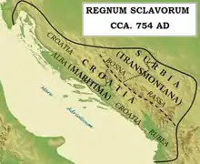 - Svatopluk, roi de Dalmatie... sur le champ de Duvno fut couronné et son royaume de Dalmatie se constituait de 4 régions : du champ appelé Duvno (Tomislavgrad), à Istra s'appelle la Croatie blanche ... et de ce champ à Durrës est appelé Red Croatia ; et le flanc montagneux de la rivière Drina à la Macédoine s'appelle Rascia, et à ce fleuve jusqu'à ici s'appelle la Bosnie. L'ensemble de la côte maritime s'appelle la Dalmatie et ses montagnes sont nommées la Croatie...