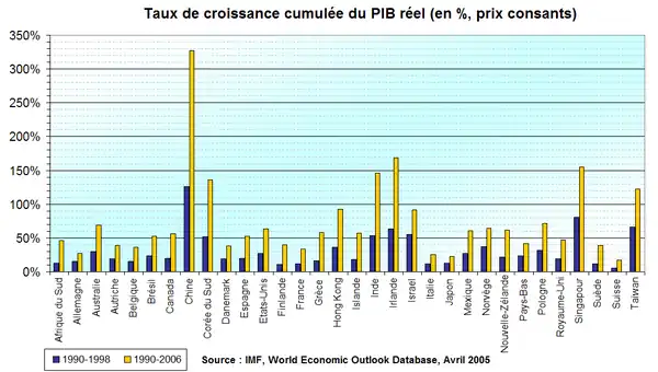 Croissance du PIB des principaux pays sur les périodes 1990-1998 et 2000-2006.