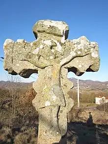 La croix repose sur un soubassement cubique monolithe aux angles abattus[1]. L'ensemble est également monolithe : le fut et la croix sont taillés d'un seul tenant dans le grès[2]. Le fut de la croix présente une forte conicité et a une section rectangulaire[1]. Le croisillon est de forme très découpé.