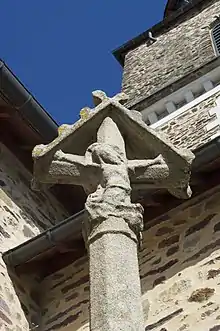 Détail du sommet de la croix, avec le Christ nimbé et protégé d'un toit.