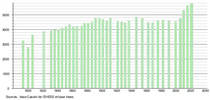 5 767 hab. (2021 en augmentation de 2,14 % par rapport à 2015en augmentation de 2,14 % par rapport à 2015)