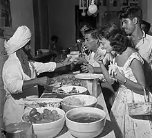 Des ersatz comme les ptitim, ersatz de riz fait à partir de blé, furent introduits, et des légumes polyvalents comme l'aubergine furent utilisés comme des alternatives à la viande. Des saveurs et des sources nutritionnelles supplémentaires étaient fournies par de la pâte ou de la purée de tomate en conserve, le hoummous, la tahina, ainsi que la mayonnaise en tube. La viande était rare, et c'est seulement à partir de la fin des années 1950 que des troupeaux de bœufs furent introduits dans l'économie agricole[9].