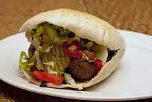 Le pain pita israélien se différencie par sa texture généralement plus douce, plus épaisse et plus pâteuse que les autres pains pita[33]. Il contient toujours une poche qui permet d'y fourrer des garnitures, dont des falafels.