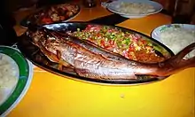 - Soumbala lafri, au poisson ou au poulet frit : accompagné de riz, gombos, aubergines, etc.