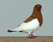 La poitrine de ce pigeon est bien arrondie et puissante. Le dos est légèrement tombant, les ailes larges et ne se croisent pas sur la queue qui est longue et bien fermée.