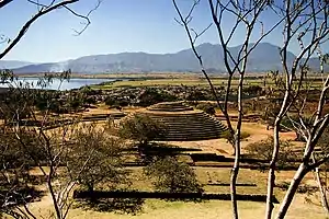 Le site archéologique de Guachimontones, situé juste en dehors de la Teuchitlán des temps modernes, dans l’état de Jalisco, est le site le plus grand et le plus complexe de la tradition de Teuchitlan[5]. Le centre de l'ancienne cité était occupé par trois zones circulaires, chacune avec en son centre une pyramide circulaire s’étageant sur plusieurs niveaux. Il existe au total dix de ces "cercles" à Teuchitlan, s’étendant sur quatre places rectangulaires et deux jeux de pelote parmi beaucoup d'autres structures plus petites[6].