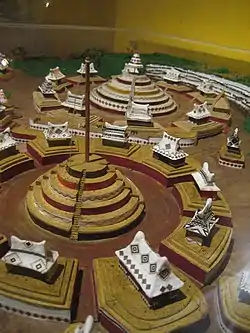 Les pyramides circulaires sont censées être un cosmogramme qui représente la structure mythologique de l'univers, et les deux piliers circulaires qui ont été disposés en leur centre l’Arbre du monde mésoaméricain Sur la base de tableaux vivants représentés sur de nombreuses céramiques qui ont été retrouvées, on pense également qu’il existe une parenté avec les cérémonies du volador célébrées à partir d’un poteau[6].